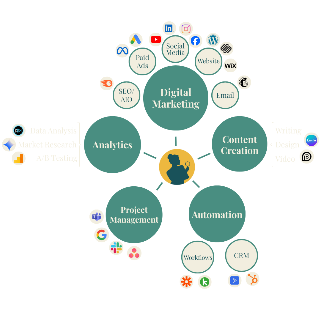 We’re experts in everything that constitutes digital marketing to give you the best chance at a well-researched/comprehensive strategy. We use powerful tools to accelerate our process, but the creative element is 100% unrivaled human brain power.